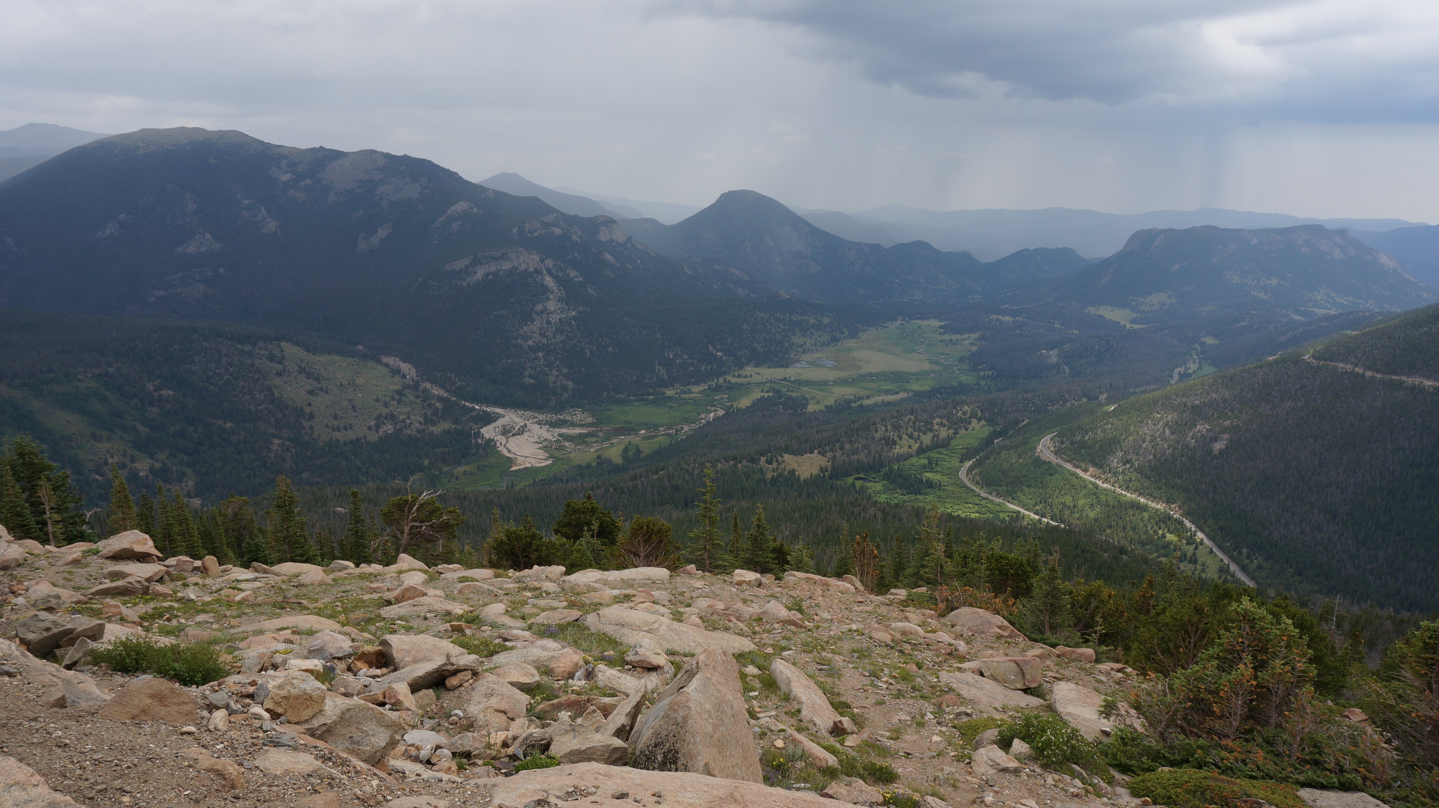 The picture above was taken at Medicine Bow Curve at about 11,500 feet. Shortly after I stopped at the Alpine Visitor Center and then started my decent down the other side. The picture below was taken at the Forest Canyon Overlook. It was at this point that it started to rain.
