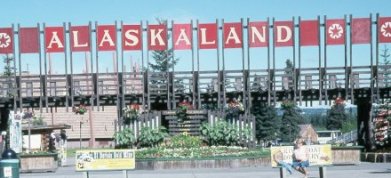 photo is of Golden Heart Plaza and The Unknown First Family. The Upper right picture looks across Golden Heart Plaza and The Chena River toward The Bridge of Flags. Alaskaland is a 44 acre historical theme park and family recreation area. I also did some gold panning at the El Dorado Goldmine. I didn't exactly strike the motherload, but was able to bring home a few small pieces as a souvenir.