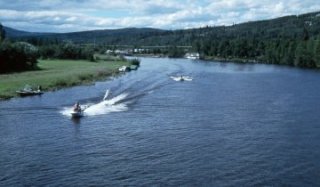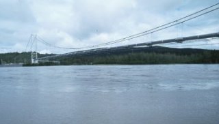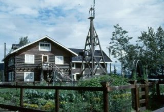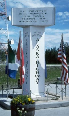 of Delta Junction. This is the true end of the famous Alaska Highway which begins 1422 miles southeast in Dawson Creek, British Columbia. The obelisk in the above left photo marks Milepost 1422. The above right photo is the Alaska Pipeline crossing the Tanana River just east of town. Rika's Road House on the lower right has been an Alaskan landmark since 1910.