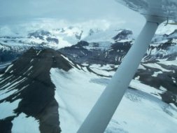 Pipeline pretty much paralled my journey down the highway. The route climbs to tundra meadows dotted with numerous lakes and streams and watched over by sprawling glaciers. Scenic views of the Chugach and Alaska mountain ranges are numerous and breathtaking. ![]() ![]() ![]() ![]() ![]() The spectacular beauty of America's second largest national park makes it well worth the trouble it takes to get here. Unless you want to travel on an unimproved one-lane gravel road for over three hours, you will opt to fly into this remote area. After spending the night in Glennallen I drove to Chitna where I boarded a small plane for the flight to McCarthy. I got on another small plane here (middle picture) for a breathtaking 70 minute flight seeing trip. In the above left photo you can see the ghost town of Kennicott shortly after takeoff. In the lower left photo you can see one of the numerous glaciers we flew over with 16,000+ foot Mt. Wrangell looming in the background. The courteous and knowledgeable pilots of Wrangell Mountain Air were wonderful.