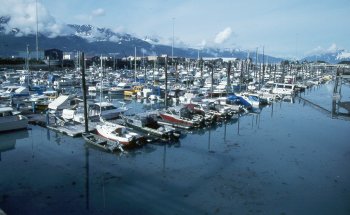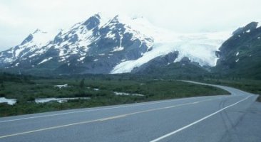 the flight back to Chitna. I then continued down the Richardson Highway to Valdez. Above left is Bridal Veil Falls in beautiful Keystone Canyon. Mount Billy Mitchell is pictured above right and Worthington Glacier lower right. ![]() ![]() ![]() The picturesque Valdez harbor is shown on the left and the Trans-Alaska Pipeline Terminus on the right.