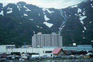 my stay in Valdez. Pictured on the right is Anderson Falls. Columbia Glacier is seen in the upper right photo. ![]() I crossed the whole of Prince William Sound the next day on the Alaska Marine Highway Ferry. Pictured above is the small community of Whittier where I got off the ferry. It had been a nearly flawless vacation up until this point. Unfortunately the bad weather would ruin the rest of the trip.
