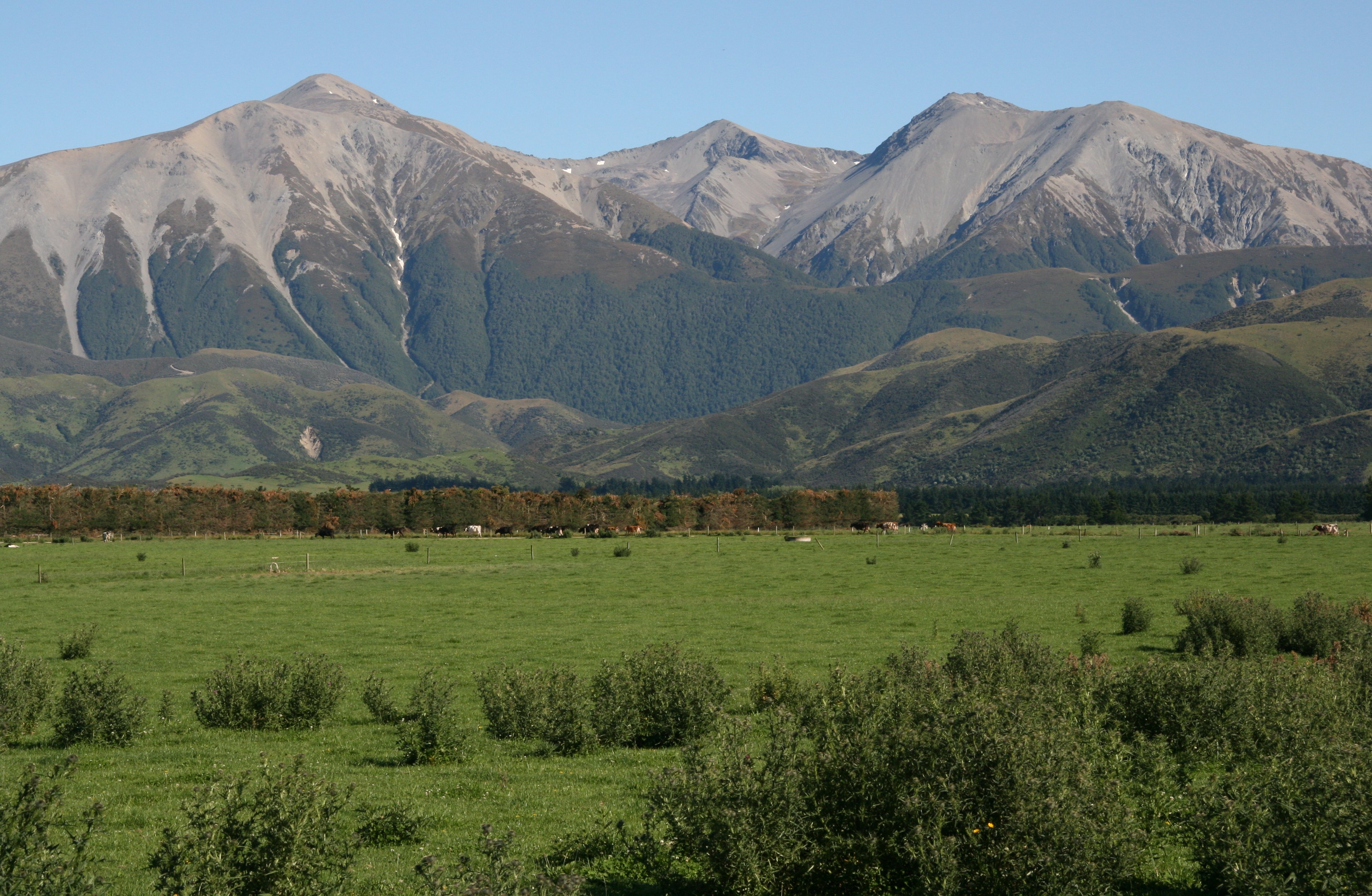 Wow, time sure is flying. Sure doesn't seem like I have been gone over three weeks now. Today was a fun day. Left Christchurch this morning which is on the South Island's east coast. Weather was great, not a cloud in the sky. That is a very rare occurrence here. I traveled about 80 kilometers west of Christchurch to the base of the mountains. That is where I took one of my favorite pictures. The South Island's Canterbury Plains yielding to the impressive Southern Alps of New Zealand.