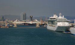 Hello, Arrived here in Barcelona, Spain just before sunrise. We were the second of seven cruise ships to pull into port this morning. Spain is in the news headlines today because of the horrible plane crash in Madrid yesterday afternoon where over 150 people were killed. At 9:30am we drove into the countryside and climbed the winding mountain road to Montserrat. This is a 1000-year-old Benedictine monastery set against spectacular mountain crags. We had just under three hours to explore and our tour guide wasted nearly an hour of that time pointing out the restrooms and other important things we apparently couldn't live without. Hence we were really rushed to see everything and there just was not time to see it all. What I was able to see is a spectacularly beautiful place. I road the funicular 3000 meters higher into the mountain. The attached picture is from the top of the mountain looking down on the monastery. The line to do that was long and they only left every 20 minutes, so that used up most of my time here. I had to hustle back to the bus in order to get there at the appointed time. There were a lot of scenic view points that I would have liked to have visited. There would have been time to do it had the tour been run more efficiently. The ride up and back was beautiful. We got back to Barcelona about 2:00 and the last bus back to the ship left town at 3:00, so I had one hour to visit La Rambla. This is the main thoroughfare through town and it is where all the tourists go. The street is full of street performers, especially mimes. With seven cruise ships in town it was a very busy place. We were the first ship to leave port at just before 4:00. It was a fun but irritating day. The time we had here could have been managed much better. The tour to Monserrat could have left much earlier leaving either more time there on more time left for touring the city after. We had nine hours in port and nearly half of it was wasted. More later, Tim |