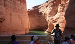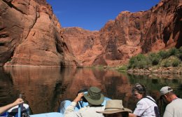 Hello Everyone, Had a busy day in the Arizona heat today. Got up to 100 today, supposed to be 104 tomorrow. But I spent most of the day on the water, so it was only bad when I had to get back in the HOT car. There is no shade out here. Started the day by going through a two mile tunnel to the base of the Glen Canyon Dam. There I boarded a raft for a smooth water float down the Colorado River. The picture below is of the Dam and bridge as we began our trip. ![]() It was a beautiful trip down the river. The walls of the canyon as high as 1400 feet above us on both sides. ![]() We were on the river for about three hours. ![]() Below is a picture of the Vermillion Cliffs at Lees Ferry where we ended our trip. ![]() It was a 23 mile trip down the river. But a 50 mile ride by bus to get back to Page. Next I took a tour of the Glen Canyon Dam. ![]() We walked out onto the Dam. The picture below is of the Colorado River and the bridge from the top of the dam. ![]() If you look in the picture above, the blue specks on the left canyon wall are the rafts where we began our river trip. On the other side of the dam is Lake Powell. ![]() This is where I began my boat trip on Lake Powell. Below are pictures of Antelope Canyon, the highlight of the Lake Powell Cruise. ![]() ![]() ![]() Below is a picture of Lake Powell itself from the cruise. ![]() And the cruise ended as we sailed by the Glen Canyon Dam. This time you can see it from the Lake Powell side where the water is 540 feet deep. ![]() That's the last dam picture. It was a fun day. It's back to the Grand Canyon tomorrow. This time the South Rim. Until tomorrow, Tim |