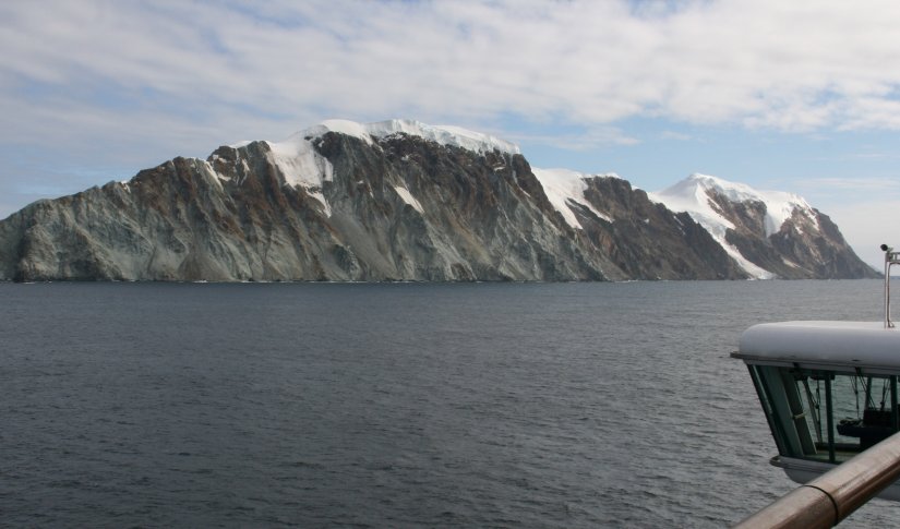 Joe, the naturalist, said this was his ninth trip here, and this is the first time it wasn't raining and foggy. We are pulling away from the glacier now and heading down to Gibbs Island. That will be the last scenic view of the day. We will sail southwest overnight across Bransfield Strait and visit Esperanza Station and Admiralty Bay tomorrow. I did see a minke whale. Well, it was a black speck that was visible for about half of a second. They said it was a minke whale, I will have to take their word for it. And below is Gibbs Island when we passed it late this afteroon.
